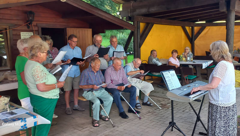Der Verein bedankt sich bei den Mitgliedern für die mitgebrachten Salate und Kuchen sowie Chorleiterin Phieler und dem Singkreis für ihre Liedbeiträge.