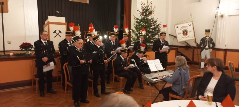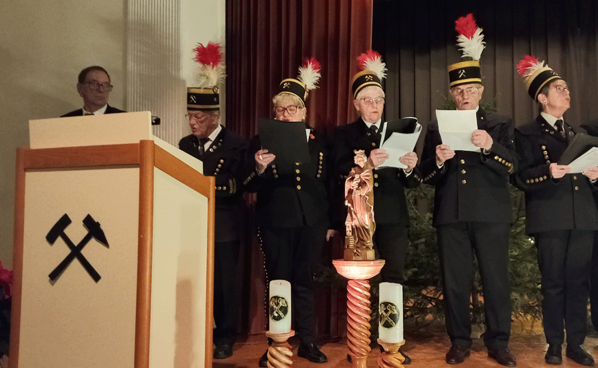 Nach dem Essen wurde die Barbarafeier mit dem gemeinsamen „Steigerlied" und dem obligatorischen Bergmannsschnaps beendet. Im Anschluss saß man noch einige Stunden gemütlich zusammen.