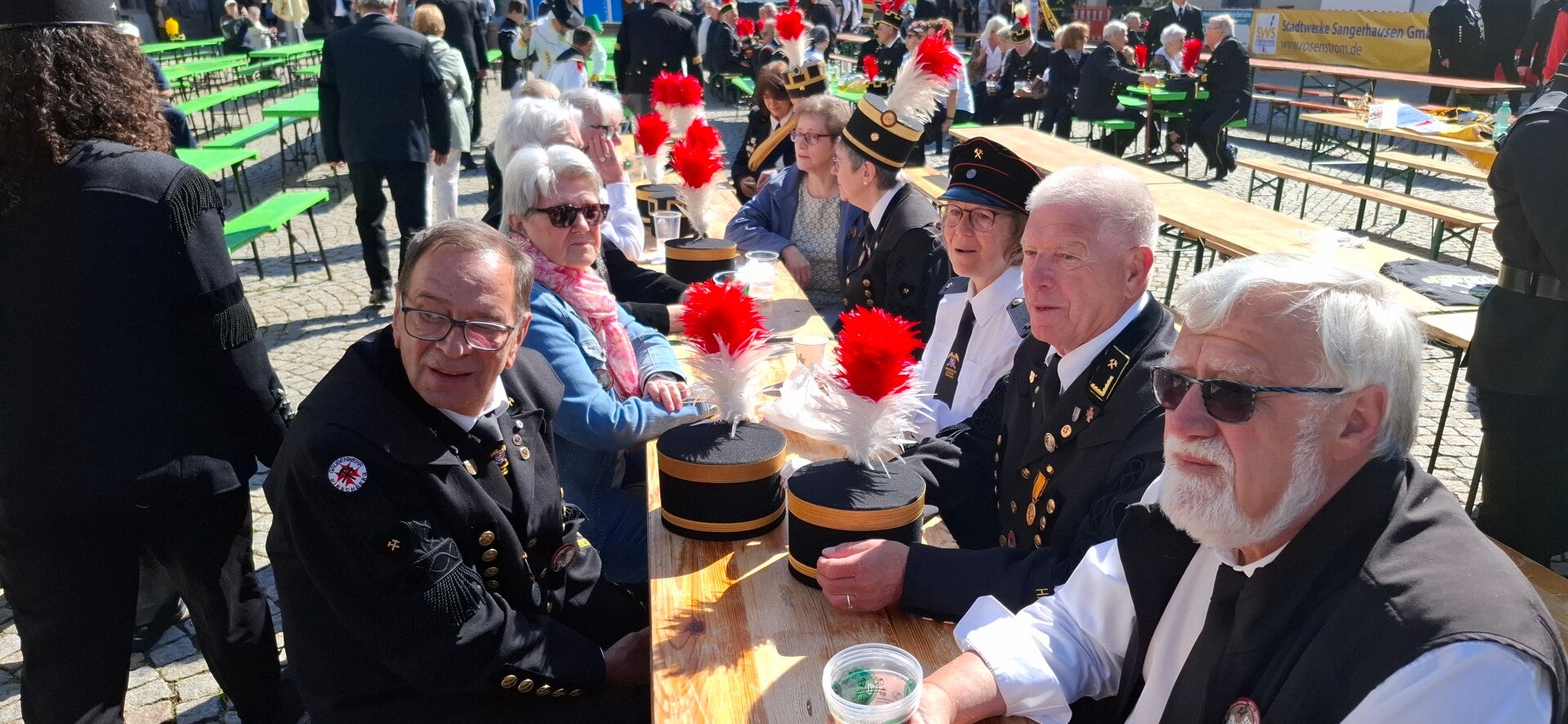 Am 10. Mai 2025 nahm unser Vereinsvorstand an der Bergparade in Sangerhausen teil. Man kann mit Bestimmtheit sagen, dass es mit 79 teilnehmenden Bergmannsvereinen mit eine der größten Paraden in Deutschland war. Vor der Parade zogen die 79 Fahnenträger in die Nikolaikirche ein, was wenig Gänsehaut vermittelte. Anschließend ging es zur Aufstellung des Festumzuges, mit einem lauten Donnerschlag aus Kanonen setzte sich die Parade in Bewegung Richtung Friesenstadion. Viele tausende Menschen standen am Straßenrand und bewunderten die Pracht der Uniformen und der Fahnen. Siebe Musikzüge begleiteten den Umzug mit zünftiger Musik und die Zuschauer begrüßten uns freundlich mit einem herzlichen "Glückauf". Der Ministerpräsident von Sachsen Anhalt Dr. Reiner Hasselhoff nahm die Parade im Friesenstadion der Stadt Sangerhausen ab und verteilte die Paradebänder an die Fahnenträger. Ein wunderbarer Tag, bei blauem Himmel und Sonnenschein satt endete im prall gefüllten Festzelt, wo wir uns für die Heimfahrt stärken konnten. www.Bergparade2025.de